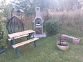 V záhrade majú hostia k dispozícii sedenie, gril a ohnisko.
