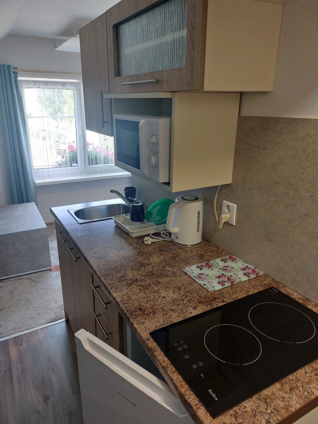 Malý apartmán s kuchynkou a kúpeľňou. Ubytovanie min. 2 noci. Thermal Park Vrbov 2 km, AuqaCity Poprad 12 km, Tatranská Lomnica 15 km.